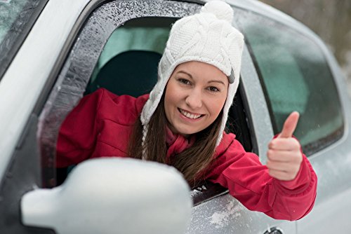 The SnowOFF Windshield Snow Cover will make your life much easier on chilly Winter mornings. NO MORE SCRAPING and brushing with frozen fingers and hands. Just peel back the car cover and shake it out for a clean, frost free windshield. This is the perfect car accessory for women. EASY TO APPLY - It takes just a couple of minutes to unfold your Snow OFF car windshield cover across your front windshield. Secure it by attaching the suction cups to the inside front windshield, then shut both doors. This makes a smooth and close fit to the outside of your windshield so less chance of ice build up underneath. IMPROVED FEATURES for Premium Protection - 8 MAGNETS - the 3 magnets on the top edge and 5 magnets on the bottom skirt help attach these automotive accessories firmly to your car body and hold the snow car covers in place. NEW LONGER SKIRT covers the wiper blades, washer fluid sprayers and engine well on most cars. This prevents encrusting of ice and snow on rubber wiper blade edges which cause cracks, rips and tears. EASY TO REMOVE - In the morning just open the doors, release the suction cups and shake off any snow, ice or leaves. Your auto windshield snow cover comes with a convenient zip storage pouch and full installation instructions. 2 SIZES FIT MOST CARS, CRVs, SUVs, RVs, TRUCKS - Medium for Cars and CRVs Fits Windshield Size up to 50 inches high x 62 inches wide + wings. Large for SUVs, RVs and Truck Cover - Fits Windshield Size up to 57 inches high x 74 inches wide + wings. CUSTOMER SATISFACTION GUARANTEE - Made from tough weather resistant fabric your waterproof car cover comes with a Customer Satisfaction Guarantee. Order NOW and wave to your neighbors left scraping and brushing away snow as you drive off with your clean ice free windshield.