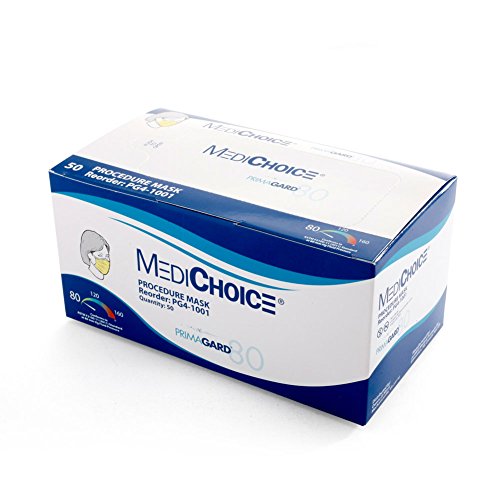 -. Title : MediChoice Procedure Face Mask w/ Earloops, P.R.Imagard80, Yellow, PG4-1001 (Box of 50)