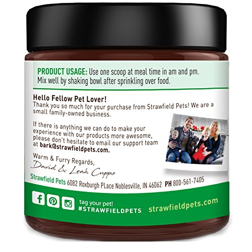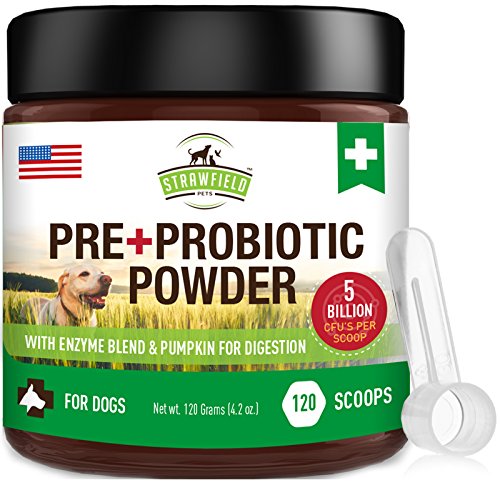 Strawfield Pets scientifically formulated dogs probiotics were created specifically to balance your dog's gut bacteria using 5 Billion CFU per scoop of the 5 most important bacterial strains including the best dog acidophilus powder. We use Inulin fiber as a digestive prebiotic to maintain the health of the live microbes. Since dog stomachs tend to be sensitive when their gut flora is out of balance, we added pumpkin to soothe their dog tummy. In addition, we included the 6 most important dog enzymes to aid in digestion for canine relief. Together our unique blend of ingredients help to improve gassy dog flatulence, dog ibs, diarrhea relief, itching relief, bloating, and dog constipation.