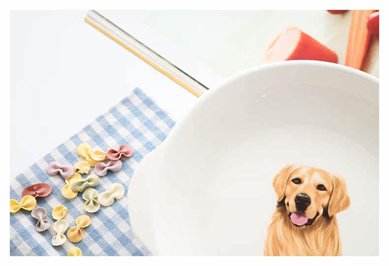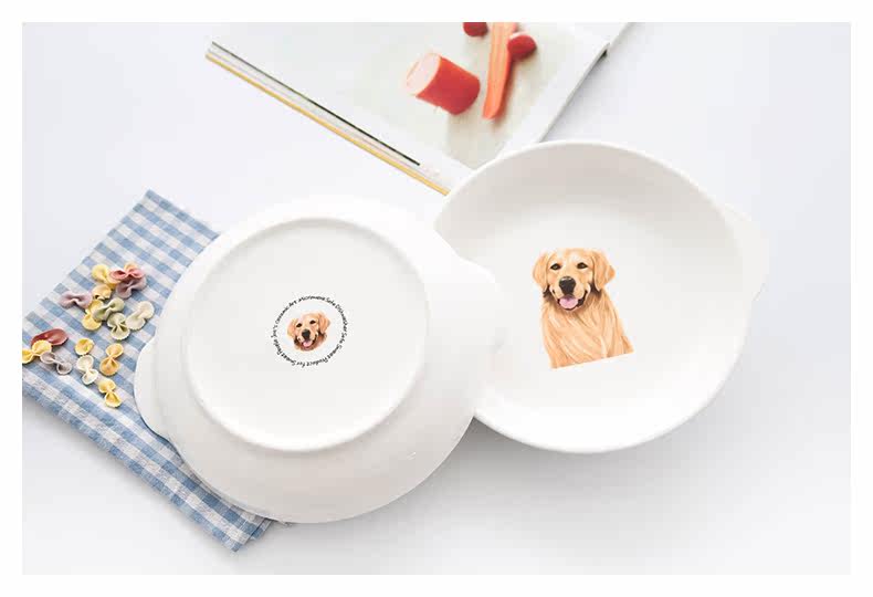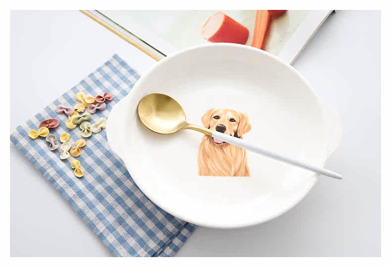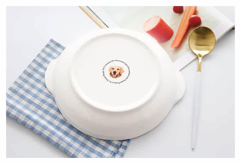 可爱金毛狗北欧陶瓷带柄盘子创意烘焙焗饭烤盘把手菜碟早餐摆拍盘