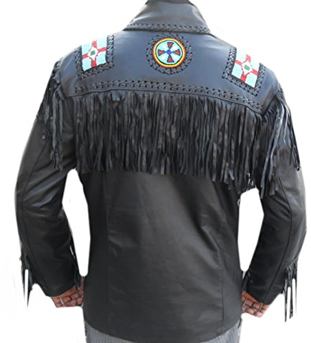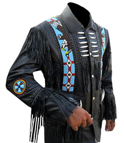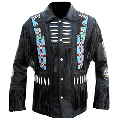 Coolhides Men's Cowboy Real Leather Jacket Eagle Beads Design