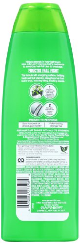 Noticing hair in your bathroom sink or brush. Fight back with the new fall fight 3-step system. Fall fight from garnier fructis helps improve hair's resistance to everyday hair-fall. The formulas with energizing caffeine, fortifying biotin and fruit vitamins, strengthen hair from root to ends, reducing falling, breaking strands. The result is stronger, fuller-looking hair.