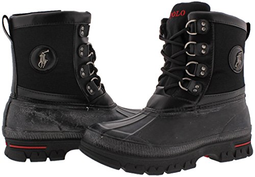 Studio : Ralph Lauren Publisher : Ralph Lauren Binding : Apparel Product Description When the weather takes a turn for the worse, your feet will stay dry in the men's "Lowen" duck boots from Polo Ralph Lauren. Designed with a waterproof shell and comfy nylon uppers, these boots are perfect for rainy days.? 0