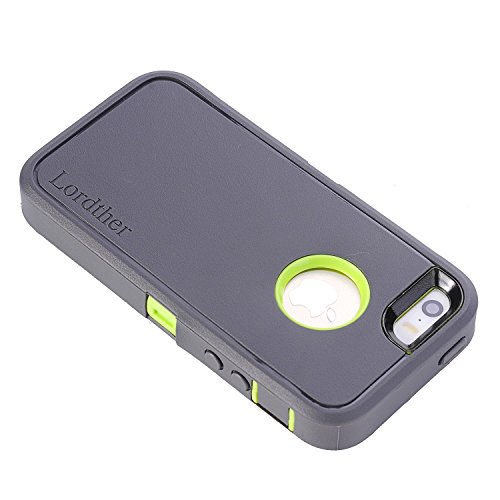 iPhone SE Case, Lordther [ShieldOn Series] [Military Grade Drop Test] [Heavy Duty] Silicone TPU Covers with [Bonus Removable Build-in Screen Protector] Only for Iphone SE 5SE 5 5s (Grey Green)