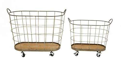 Creative Co-Op Metal Rolling Laundry Baskets Set