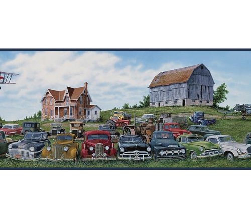 Junkyard Field of Cars Wallpaper Border - Blue Edge …