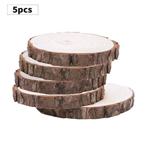 Fuhaieec 5pcs 5.5"-7" Unfinished Natural Wood Slices Circles with Tree Bark Log Discs for DIY Craft Woodburning Christmas Rustic Wedding Ornaments