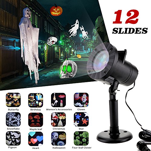 Halloween Decorations Projector lights MZD8391 outdoor Moving Rotating Projector LED Spotlights Waterproof projection Led lights for Wedding Halloween Xmas Decoration (12 Patterns)