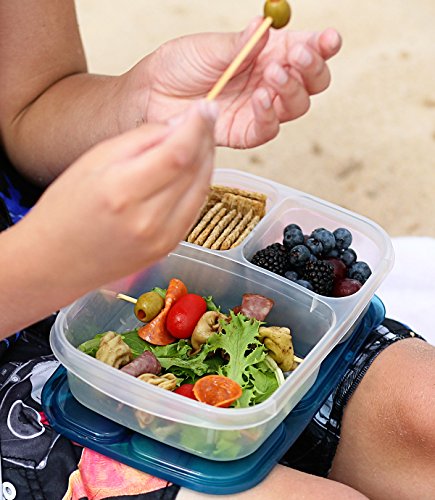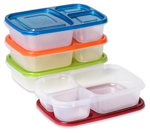 EasyLunchboxes 3-Compartment Bento Lunch Box Containers, Set of 4, Classic