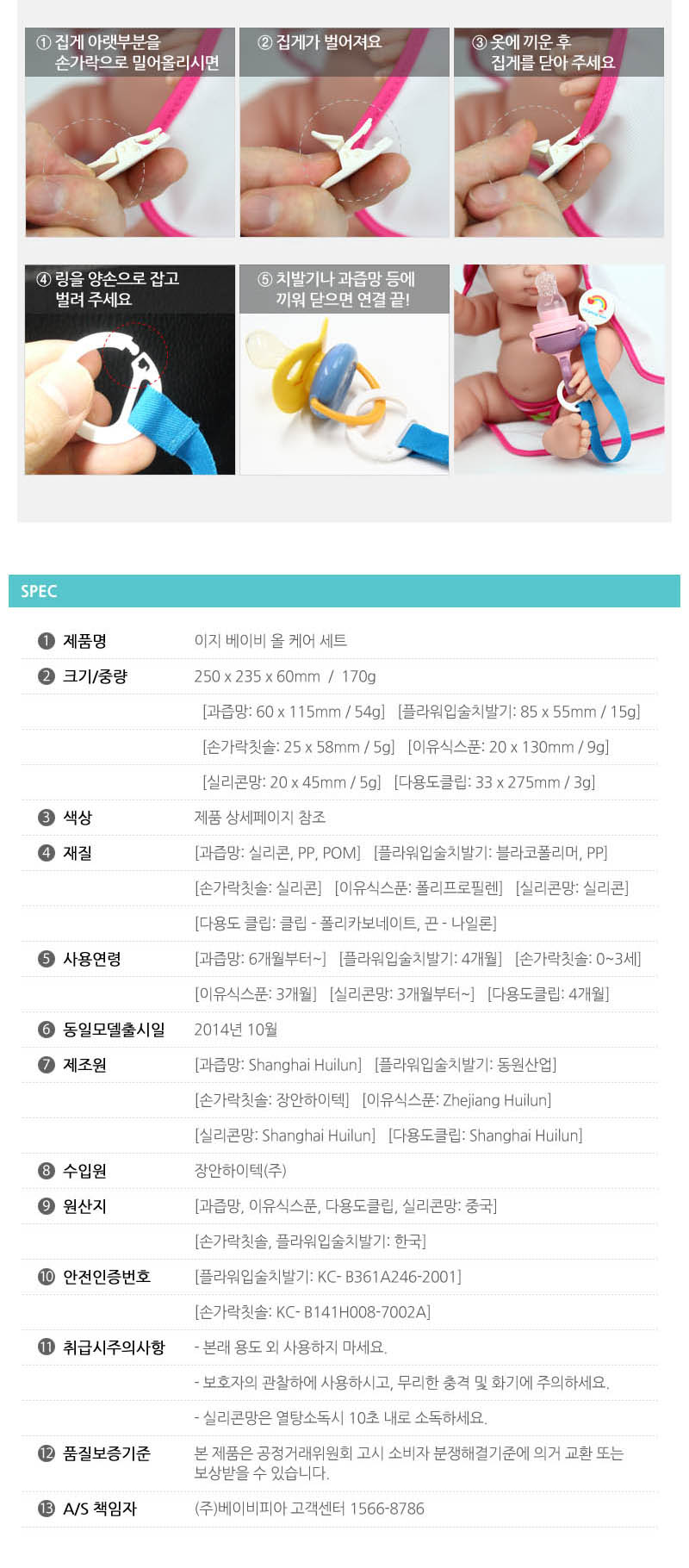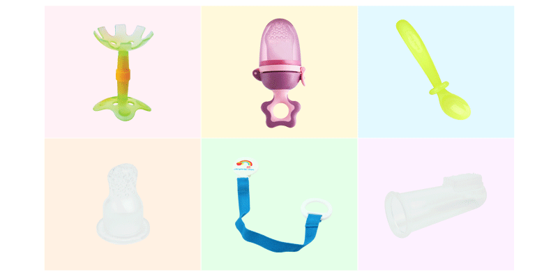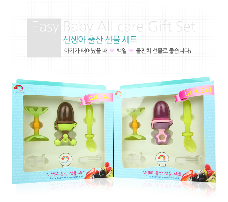 *Yecomom Baby All care set*Perfect gift which consists of a teether, a finger toothbrush, a spoon, a juice extractor and a multi-functional clip for new born babies