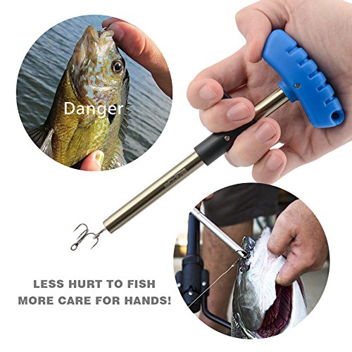 ?nbsp10.8/11 inches in length is suitable for removing hooks from most fish.Smooth stainless steel tube is durable and rust-resistant in both fresh and saltwater.The 7 inches is compact and convenient,you can placed it into pocket. ????SimpleFast ??The ergonomic plastic handle provides comfortable and stable grip. allows anglers twist the wrist easily in the process of removing hook. ????Extremely Useful for Deeply Swallowed Hook ?? You can stick longer tool in upto 8 inches, nice for removing those deeply embedded hooks from bass or pickerel without being hurt by sharp teeth. Besides, you only need to squeeze the handle, then hook out of fish, damage is very small. ????Safe ?nbsp1#For fish:Some fish swallow hook very deeply, so here is the tool to get the hook out safely and conveniently with minimal stress and less harm to fish. ??2#For anglers:Its long body(8 inches) can prevent your fingers being scratched or hurt by fish teeth. ???Basic Parameters ??Dimension:10.8*3*1.2 inches/10*3.1*1.2inches/7*2.8*1.4 inches ??Material:Stainless SteelNickel Plated/Aluminum/ABS Plastic ??Weight:0.164Lb/0.17Lb/0.12Lb 0