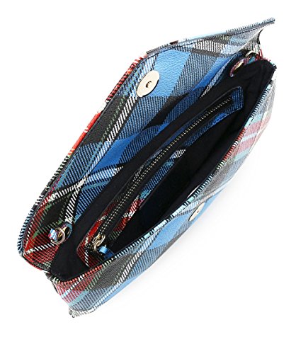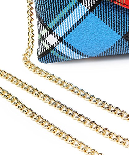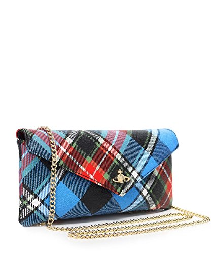 -. Feature : 90% cotton, 10% PVC / Tartan P.R.Int / Envelope popper fastening / Golden orb to front / Detachable chain strap