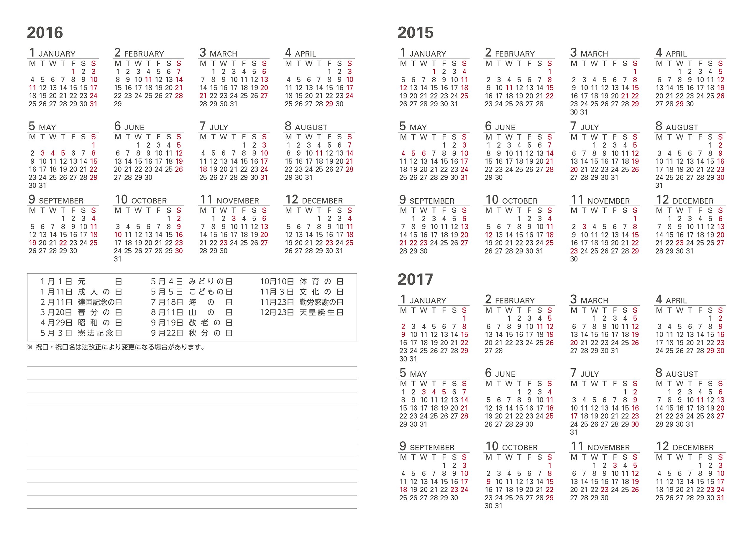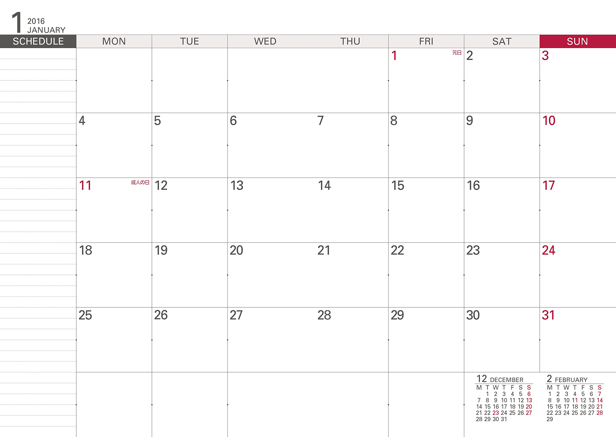 - The mini-calendar of the previous month and the following month is attached to the right end lower, and you can grasp the three months' worth before and after.