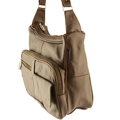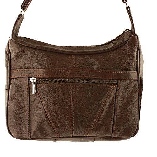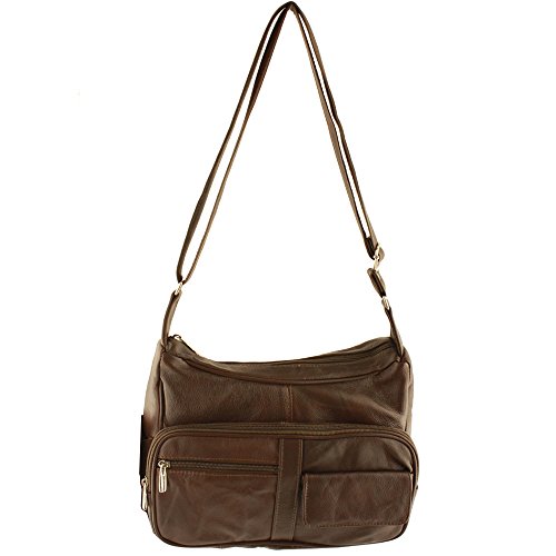 -. Feature : REAL LEATHER Silver Fever® Brand Medium/Small Organizer Handbag. Leave your bulky handbag at home and enjoy this perfect sized genuine leather handbag, perfect for everyday carry and travel. / AFFORDABLE AND DURABLE. Don't sacrifice quality for P.R.Ice. This leather handbag will last long term and won't break the bank. / ORGANIZED STYLE. Stay trendy without sacrificing personal organization. This cute mid-sized handbag includes exterior and interior pockets for all of your everyday items. / PACKED WITH FEATURES. This bag's top zippered closure, multipurpose compartments, versatile pockets, and adjustable shoulder strap will keep your belongings safe and secure. Removable FREE GIFT - Silver Fever Signature Key Chain Purse Flashligh. Usefull at night, in restorants, to find small item in a purse, etc. / PERFECT SIZE FOR EVERYDAY USE. Measures Approx: 11" x 7.5" x 3", 12-24" Adjustable Strap Drop