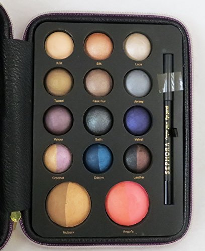 -. Feature : 12 x 0.032 oz Eyeshadow in Knit, Silk, Lace, Tweed, Faux Fur, Jersey, Velour, Satin, Velvet, Crochet, Denim & Leather. / 0.023 oz. Eyeliner pencil (Crayon Yeux) / 0.074 oz Blush in Angora color / 0.088 oz. Bronzer in Nubuck color