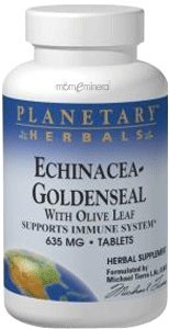 Studio : Planetary Herbals Publisher : Planetary Herbals Binding : Health and Beauty Product Description Echinacea-Goldenseal w/Olive Leaf 30 tabs Dietary Supplement Echinacea and goldenseal are the two most relied-upon botanicals for winter health. Echinacea reigns supreme as North America's primary immune-enhancing botanical. This combination is further enhanced by the addition of European olive leaf plus other key Western and Chinese botanicals such as garlic isatis and andrographis.* Suggested Use: 2 tablets twice daily between meals. Supplement Facts Serving Size 2 Tablets Amount Per Serving Echinacea purpurea and pallida Root 450 mg Goldenseal Root 380 mg Olive Leaf Extract (standardized to 15% oleuropein) 250 mg Proprietary Blend: 190mg Garlic Clove Andrographis Aerial Parts Extract (5:1) Isatis Root Extract (5:1) Dandelion Root Extract (4:1) Licorice Root Extract (4:1) and Ginger Root Extract (5% gingerols). Other Ingredients: sorbitol stearic acid colloidal silicon dioxide modified cellulose gum and magnesium stearate. Warning: Do not use if you are pregnant may become pregnant or breastfeeding. Do not use if either tamper-evident seal is broken or missing. Keep out of the reach of children. * These statements have not been evaluated by the Food and Drug Administration. This product is not intended to diagnose treat cure or prevent any disease. 0