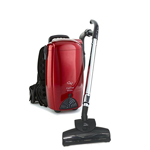 NEW 2017 model BLUE GV 8 Quart HEPA Backpack Vacuum. The GV 8 Quart has 98 inches of water lift, only weighs 10 pounds and comes with a 25-foot cord. Comfortable straps with chest and waist straps. Comes with 6 tools, extendable metal wand and NEW UPGRADED SUPER FLEXIBLE HOSE with improved DURABILITY. Crevice tool works great for wall edges, tight spaces and in between cushions. Duster brush is perfect to keep allergens out of your air by vacuuming as you dust. Upholstery tool is designed for couches, car seats, etc... Combination Floor tool effectively cleans your all floor surfaces without risk of damage. The Mini and Large GV Turbo Nozzle have an air driven brush roll to aid in deep cleaning your carpet and pulling pet hair out of carpet and upholstery fibers. The GV Turbo Nozzle works on all surface types. If you have a lot of hard floor surfaces, then this vacuum is for you. Easy to use pump style handle and crush proof hose can be switched to left or right side of vacuum depending on preference. Hose can also be attached to exhaust port to inflate or blow. The GV 8 Quart has a 4 stage filtration system with sealed HEPA filter & HEPA bags and comes with 6 HEPA bags, HEPA filter and 8 Quart SMS cloth bag. If you have allergies this vacuum is for you. 1 Year Power Unit, 2 Year Motor Manufacturer Warranty.Feature