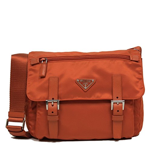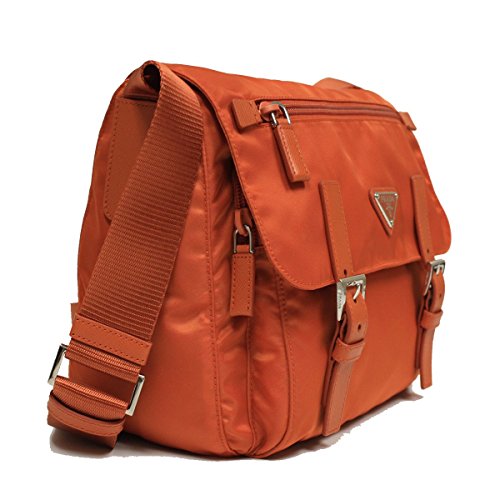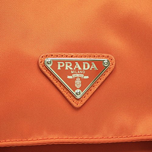 • Prada Papaya Orange Tessuto Pattina Nylon and Leather 2 Pocket Cross Body Messenger Bag BT0953