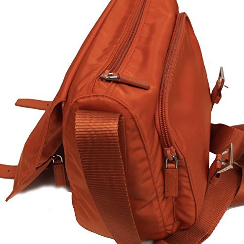 PRADA ORANGE TESSUTO PATTINA NYLON LEATHER CROSS BODY MESSENGER BAG BT0953