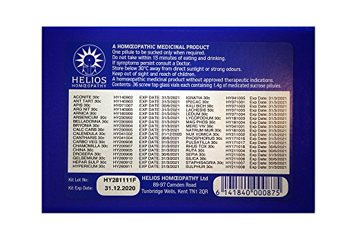 Studio : Helios Publisher : Helios Binding : Health and Beauty Product Description A Homeopathic 36 Remedy Kit Exploring Homeopathy Course (see tri-fold included with kit for details) - ideal for first aid emergencies, acute illness and childhood complaints. The additional 18 remedies (includes the 18 remedies from our 18 Remedy Kit) in this kit will increase your ability to prescribe more effectively. The Basic 36 Remedy Kit includes the following remedies: Aconite 30 Ant Tart 30 Apis Mel 30 Argent Nit 30 Arnica 30 Arsen Alb 30 Belladonna 30 Bryonia 30 Calc Carb 30 Calendula 30 Cantharis 30 Carbo Veg 30 Chamomilla 30 China 30 Drosera 30 Gelsemium 30 Hepar Sulph 30 Hypericum 30 Ignatia 30 Ipecacuanha 30 Kali Bich 30 Lachesis 30 Ledum 30 Lycopodium 30 Mag Phos 30 Merc Viv 30 Natrum Mur 30 Nux Vomica 30 Phosphorus 30 Pulsatilla 30 Rhus Tox 30 Ruta 30 Sepia 30 Silica 30 Staphisagria 30 Sulphur 30 ... with a wonderfully comprehensive, self-prescribing guide in the box. (Approx. 35 sucrose pillules in each glass vial.)* *Currently a click-pack container of Arnica containing 80 pellets sells for $8.22 including shipping charges. A kit containing 36 of these containers including a case to put them in, if purchased separately, would cost over $300 and you would not be able to hold the kit in the palm of your hand! "Having a compact homeopathy kit with you means that you are always prepared for first aid situations and minor illnesses, even if the stores are closed. Homeopathy works best when the remedy is carefully matched to the symptoms, so it follows that having more remedies on hand means you can make really great matches and get great results. - Mary Aspinwall, Kit Designer Homeopath For informational purposes only, not intended for, and neither should it be taken as a substitute for professional medical advice. Stop use and ask a physician if symptoms persist for more than 3 days or worsen. If pregnant or breast-feeding, ask a health professional before use. Keep out of reach of children. 0