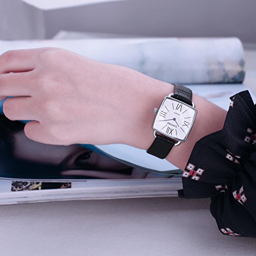 UNIQUE DESIGN WOMEN'S WATCH: Break through the tradition unique smooth curve square shape case, but white dial with black leather strap classic charm of the color scheme, lead the trend