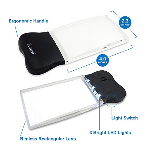 - Title : Fancii LED Light 2X Large Rectangular Handheld Magnifier Reading Magnifying Glass - 2.3" X 4" Rimless Distortion-Free Lens - For Seniors, Low Vision, Books, Pages, Magazines, Newspapers, and Maps