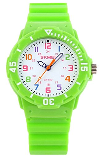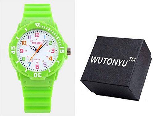 -. Title : WUTONYU(TM) Kid's Candy Color Cute Design Rubber Band Color Digital Quartz Wristwatch (Green)