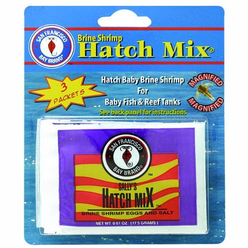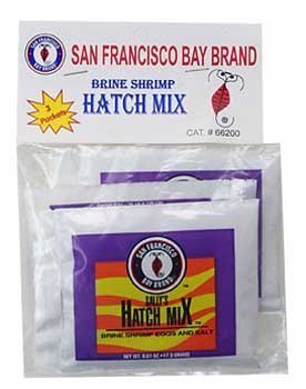 San Francisco Bay Brand brine shrimp hatch mix is designed for baby fish and reef tanks. It is highly notorious and excellent for fish and reefs. Brine shrimp contain beta carotene a natural color enhancer, high levels of lipids and essential unsaturated fatty acids required for biological processes. Stimulates good growth and enhances the color of the fish. Perfect for small or baby freshwater fishes, small saltwater fishes, saltwater invertebrates and corals. Available in a pack of three 0.61-ounce pouches.Feature