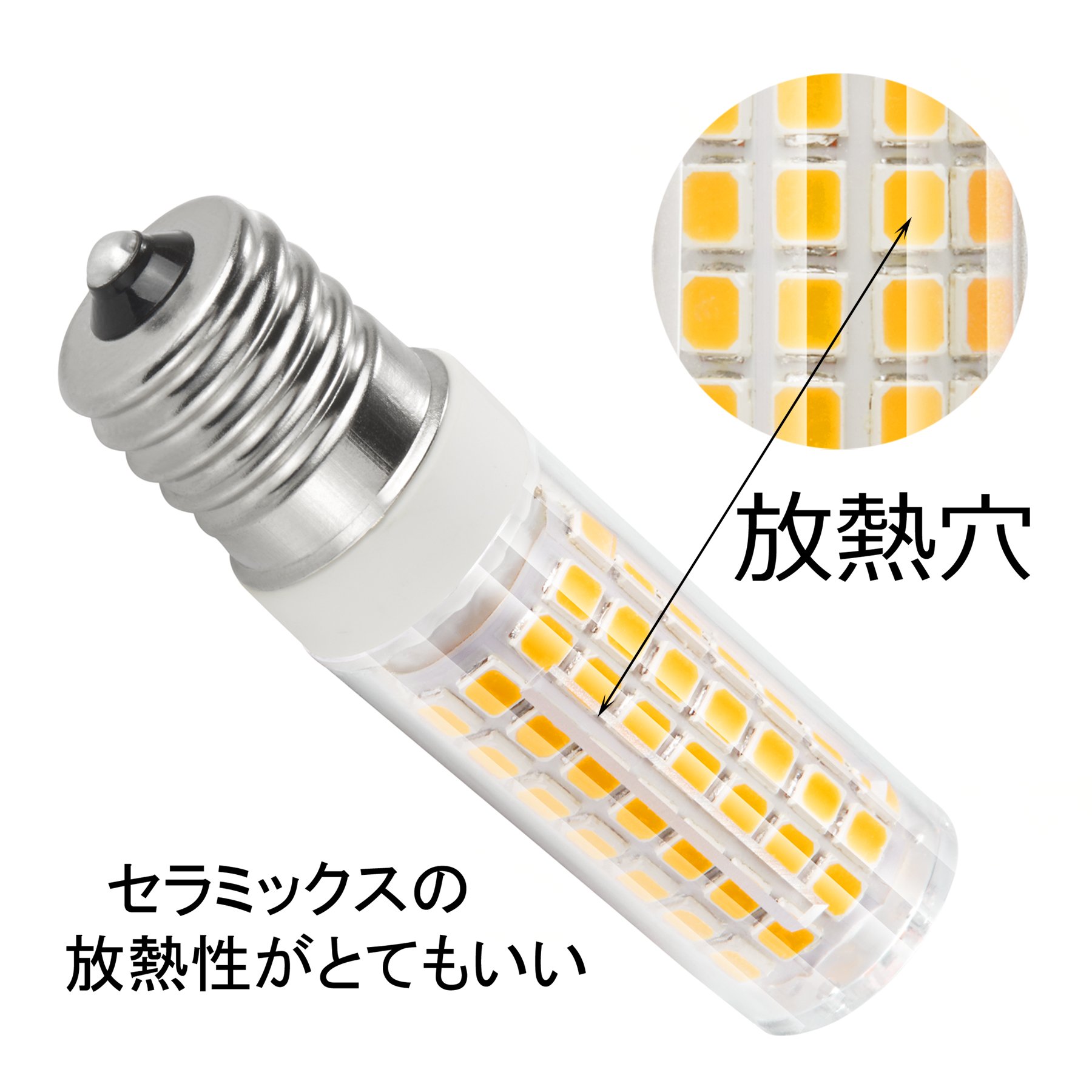3, heat dissipation is strong, convection heat dissipation, several long heat dissipation holes are provided, inside and outside convection of the bulb can be dissipated, the bulb life is protected.
