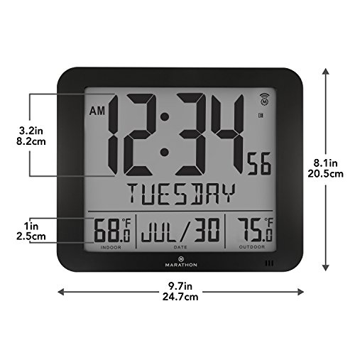 (Marathon)/Patio, Lawn Garden/Weather Instruments/DIRECT FROM USA/MARATHON CL030027-FD-BK Atomic Wall Clock with 8 Timezones, Indoor/Outdoor Temperature Date -...