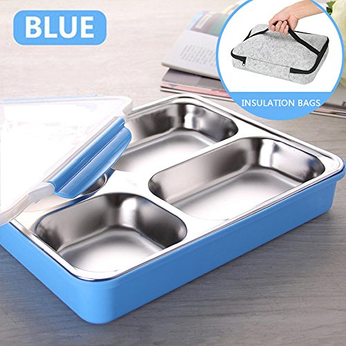 LARGE CAPACITY SIZE: Large capacity bento box size:11.8*9.25*2.36 inches,4-compartment lunch box make sure your food separated and won't mixed up. Free gift insulation bag with tin foil design, play a micro-insulation function, and the upgrate insulation bag can be extended 1-2 hours holding time.This lunch box also as a great container for fruit,icecream or any snakes container.