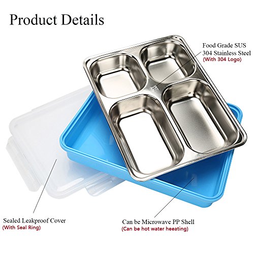 FOOD-SAFE MATERIAL: The bento lunch box made of high quality 304 food grade stainless steel, durable, no-deformation, safe and harmless. Liner surface smooth and delicate,with non-slip design, easy to take and effective anti-skid. Ideal for school, work, travel and outdoor activity.