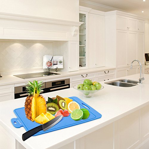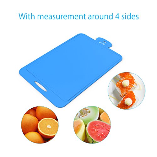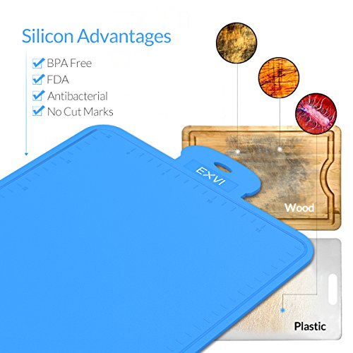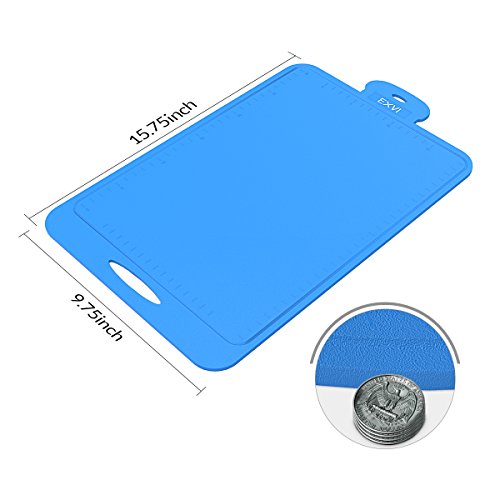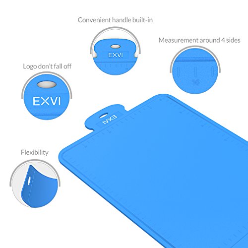 Product Description Color:Blue The Secret To Choosing the Perfect Silicone Pastry Brush is Innovative Design & Quality Materials. Silicone's are safe, made from silicon found in common sand and oxygen molecules,excellent insulator; it can tolerate a huge range of temperatures. Each of our utensils is designed to meet the needs of chefs and bakers and manufactured to the highest standards using only the best materials. Special Design: √100% FDA Grade, BPA Free Silicone coated cooking utensil set √Large enough to do more food preparation quicker, thickness about 0.3" √The silicone board bends nicely to allow the chopped item to be poured into a pot or bow √Flexible Nonslip Antimicrobial Thick Heat Resistant √Easy to clean without residue, can be placed in the dishwasher cleaning, and its convenience √The sides of the silicone cutting board have slots and measuring scales that allow you to design the size of the food and collect the juice that flows out √EXVI products for all customers to provide 18 months of quality warranty, a greater degree of assurance to each customer's consumer experience Our Silicone Products Package Contains: 1 x Cutting Board(15.75 inch x 9.75 inch x 0.3 inch ,Blue):Cut fruits, cut vegetables, making a variety of food Lifetime Guarantee against defects in materials or workmanship. Click the Add to Cart Button at the Top of this Page to Order Your Set NowFeature