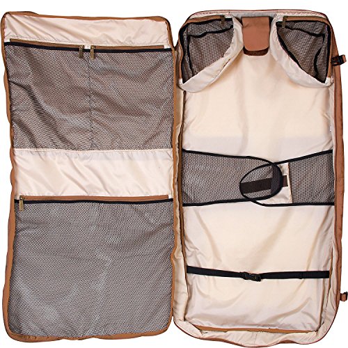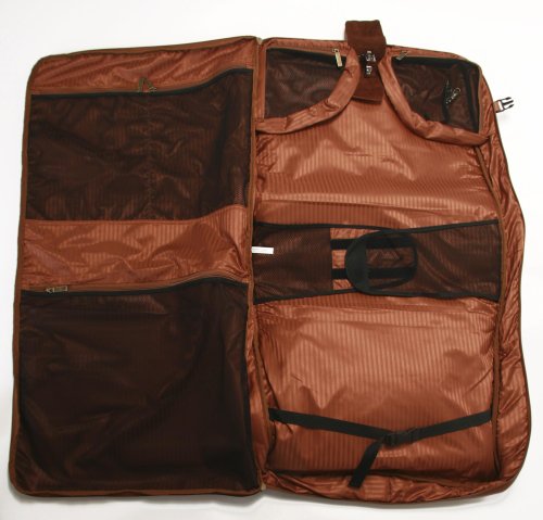 -. Feature : Patented leather covered inchwally lock inch plus two inner straps to secure garments / Three outer zipper pockets, six inner compartments, including special pull out compartment / Locking zipper / Leather ID tag / Antique brass hardware