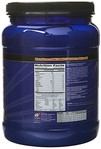 ReleaseDate : 2015-05-28 Studio : Weider Publisher : Weider Binding : Health and Beauty Product Description MEGA MASS 4000 is engineered for hard-gainers training intensely and trying to pack-on mounds of rock hard mass. When you train as hard as you can, your body demands extra calories and protein to recover - calories and protein are needed throughout the d. 0