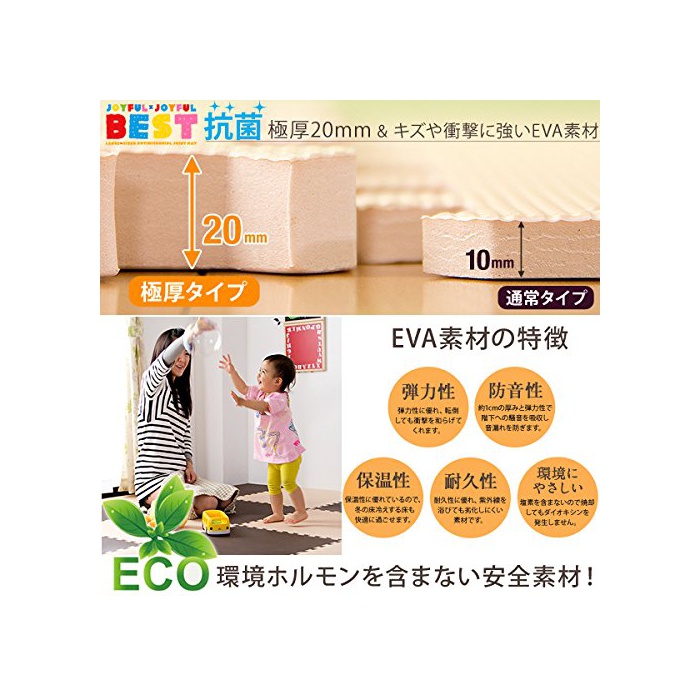 【추천 포인트!】쿠션성,방음성이 높은극 후20mm / 소스페이스나 구매 더하게 최적인 16 매세트 / 버섯의 증식을 억제하는 항균 가공 / 설치 시간도 단축 할 수 있는 대형 사이즈 / 자녀분들에게도 안심 non《호루무아루데히도》 / 싸이드 파트 부착 / 상난방 대응 / 상처 충격에 강한 EVA수지 / 마루의 차가움을 막는 보온성 / 커터나 가위에 간단하게 끊어지기 때문에 레이아웃 자유자재 / 더럽혀진 때는 날렵하게 1 닦아♪손질 간단