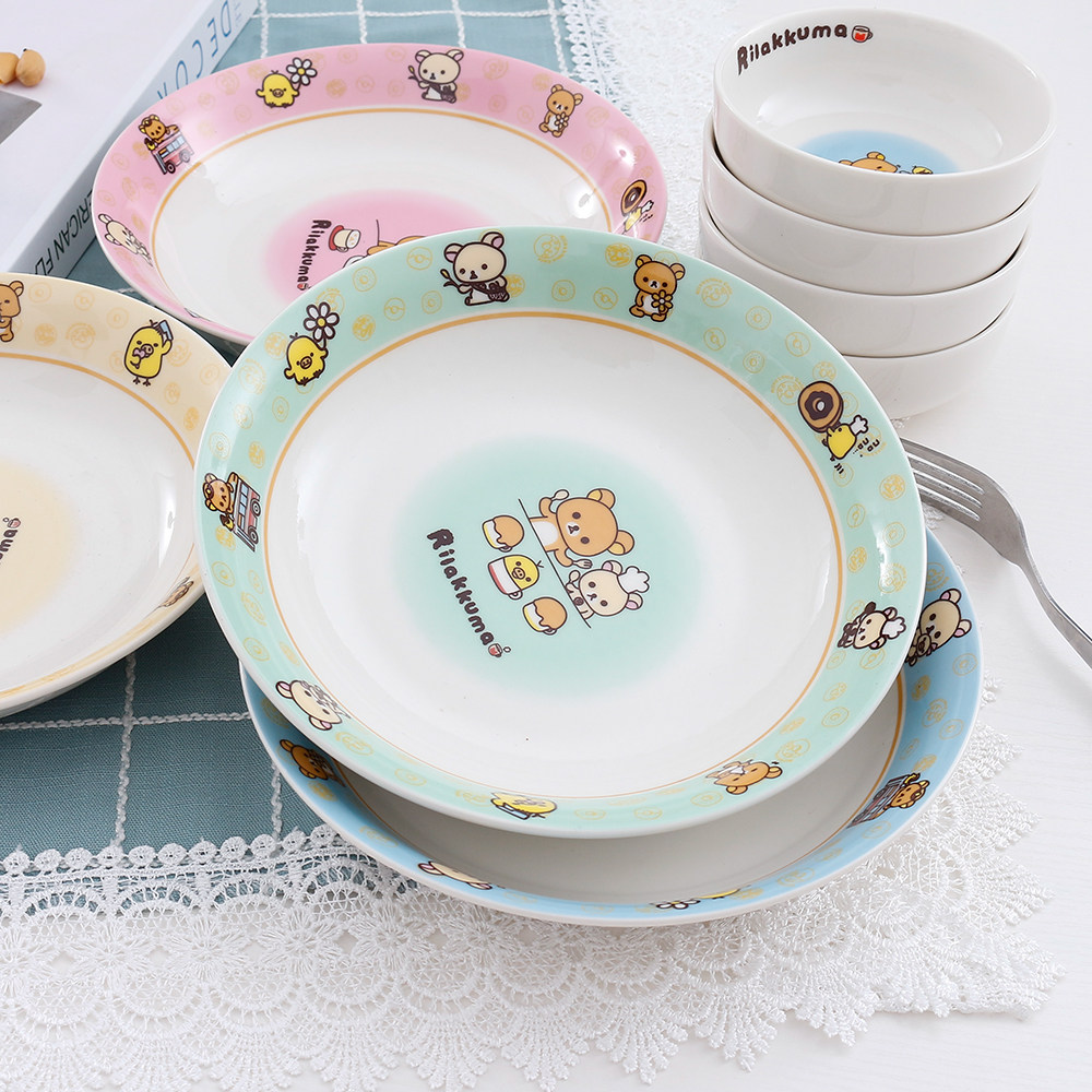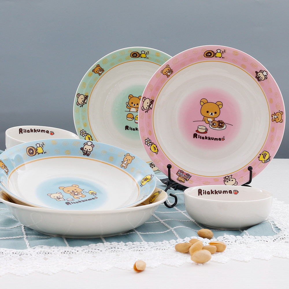 日本 人气可爱卡通轻松熊陶瓷菜盘 家用深盘 饭盘 圆盘创意盘子碗