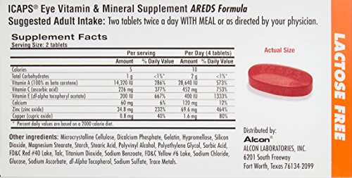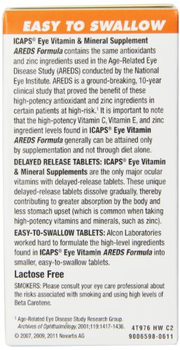 -. Feature : Dietary supplement helps preserve healthy vision / Contains antioxidants and zinc ingredients used in the Age-Related Eye Disease Study (AREDS) / Developed by Alcon Laboratories, a world-wide leader in eye care / Note: this product has not been evaluated by the Food and Drug Administration / Please read all label information on delivery