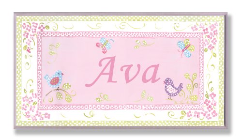 The Kids Room by Stupell Ava, Pink and Green Chickadees Personalized Rectangle Wall Plaque