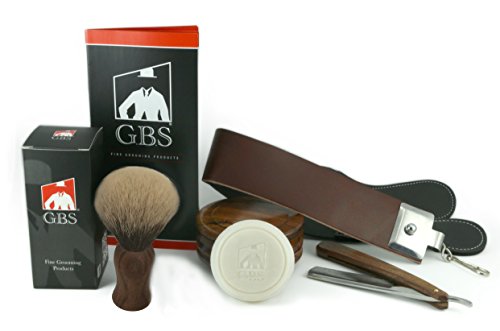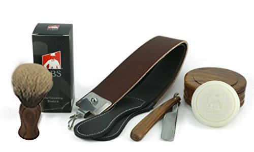 5 Piece Shaving Set - Soap, Wood Bowl, Wood Straight Razor and Wood Synthetic Brush