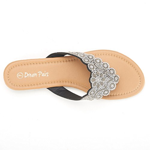 Product Description The ideal shoe for casual or formal occasions, perfect way to complete your outfit. This DREAM PAIRS DIAMONTE pair of sandals features your color choice of black, silver or gold for ultimate versatile.These comfortable stunning rhinestone accents makes these flats toe ring a stylish, logical choice. 0