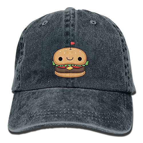 Uzhongquux Kawaii Burger Unisex Cotton Denim Baseball Cap Adjustable Strap Low Profile Plain Ha...
