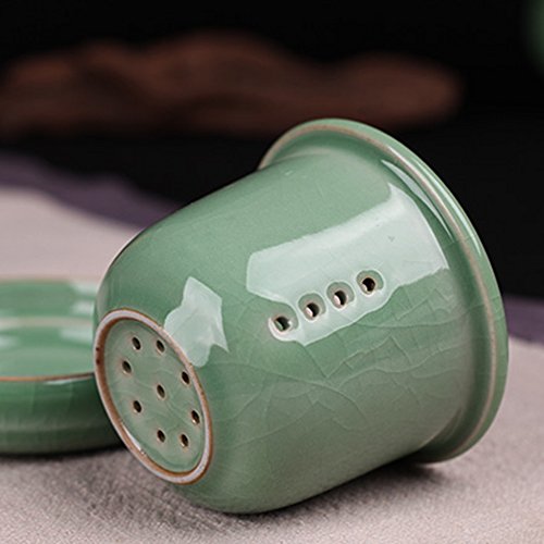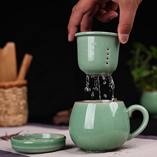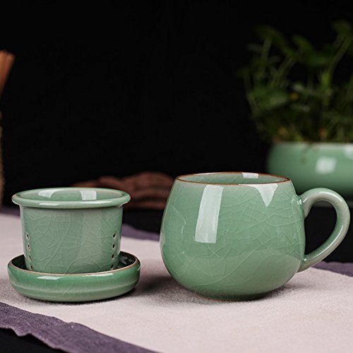 -. Feature : It quality of the porcelain good celadon, glazed smooth, quality assured / Diameter: 3.85 inches / 8.6 cm, Height: 3.4 inches / 9.8 cm. Capacity: 250ml / It's a simple way to brew loose leaf tea and includes an infuser, saucer and lid. / A great tea cup for loose tea lover,perfect for all kinds of infusions (camomile, leaf tea, mint tea, herbal teas, flower tea...),enjoy it alone or with your friend,like going out for afternoon tea! / Cup body design completely performed by Longquan traditional hand-painted process