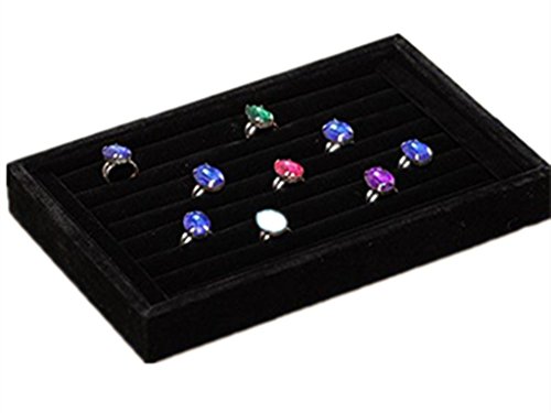 WT-PP Black Velvet Jewelry 7 Rows Ring Organizer Display Case