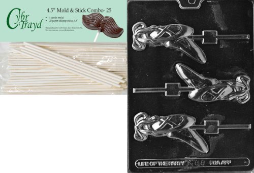Cybrtrayd 45St25-K088 Ballet Slippers Lolly Kids Chocolate Candy Mold with 25 Cybrtrayd 4.5-Inch Lollipop Sticks