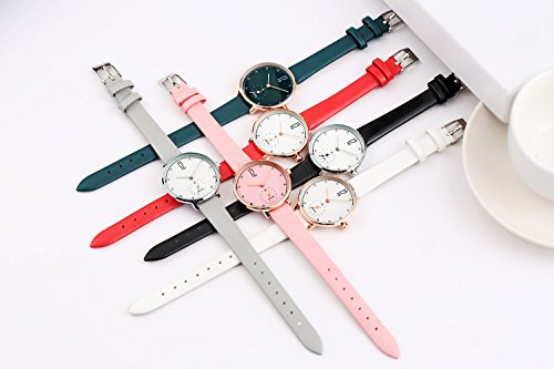 -. Feature : シンプルでおしゃれの女性用腕時計、友達、彼女、親友にプレゼントピッタリ! / ケース直径:32mm、ケース厚み:10mm、バンドの幅:12mm、バンド長さ:217mm、調節可 / バンドカラー:グリーン、ホワイト、ブラック、ピンク、レッド、グレー / 生活防水」30メートル(3気圧防水)日常生活用防水(シャワーや水泳など禁止) / 保証時間は1年間