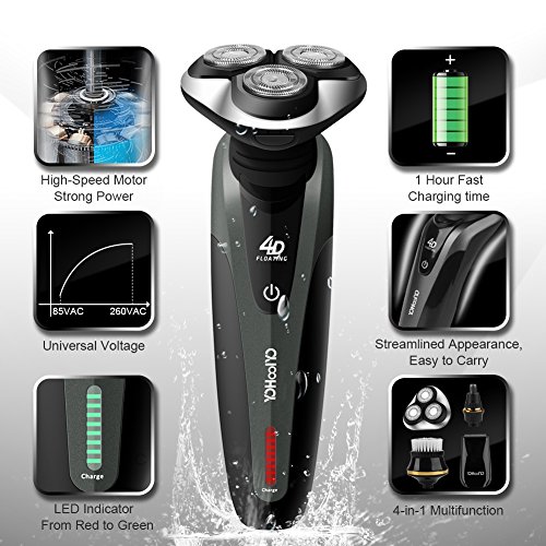 YOHOOLYO Electric Shaver Rotary Shavers Wet and Dry Waterproof Electric Razor with Nose Trimmer Sideburns Cutter for Men