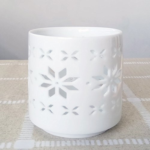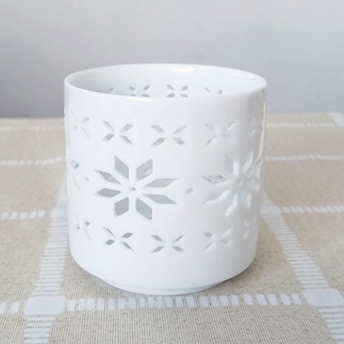 Better-way Ceramic Christmas Candle Holder Hollowing Tea Lights Candle Container Pottery Christmas Gifts for Home Decor (White Snowflake)