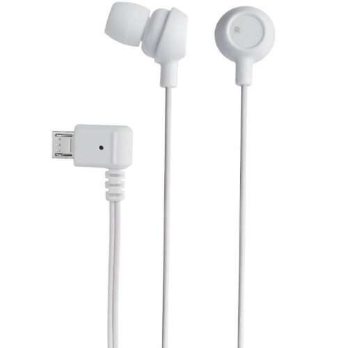 Canal type stereo headphones that can be connected to a smartphone equipped with a microUSB terminal (female) for voice input and output.