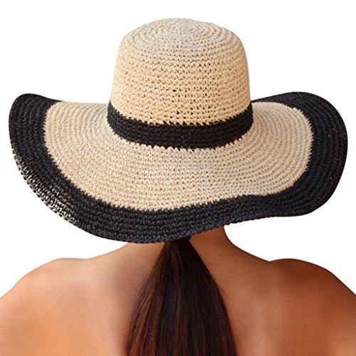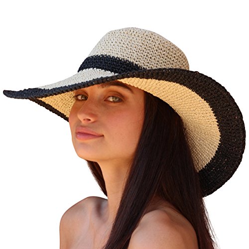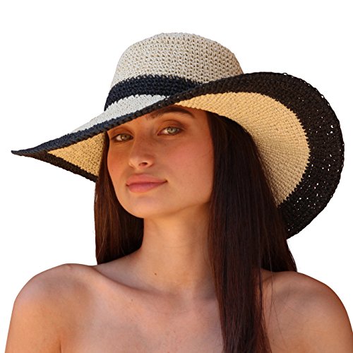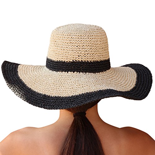 Rich in texture and teeming with carefree yet sophisticated style, the Palms Sand Andros Women's Floppy Wide Brim Sun Hat boasts casual elegance that's perfect for any sunny day. Beautifully crafted from loosely hand woven dried paper fibers, this hat features a timeless silhouette with a rounded crown that measures 4", a 17" diameter that gives it bold appeal, and a floppy 4.75" brim that creates a chic silhouette and offers stylish sun protection. In a two-tone design that's easy to pair with any outfit, this hat is a must-have in every woman's summer wardrobe. This hat features durable construction and boasts a two-tone design in a natural hue with navy accents that surround the crown and trim the edge of the brim. The contrast color accents add just the right amount of fashion yet maintain a classic look that can be easily teamed with a variety of different outfits and styles. Wear it with a swimsuit on the beach, pair it with a beach cover-up or shorts for a day of lounging by the pool, or wear it with a pretty summer sundress and sandals for an al fresco lunch date, a beach party, or a backyard barbecue with family and friends. The neutral color combination works with just about any outfit, making this hat a perfect choice for the woman who wants a classic hat that she can wear all summer long.p> Providing sun protection to keep you safe from harmful UV rays, this sun hat has a chic, floppy silhouette that frames the face beautifully and adds a touch of ultra-feminine charm to any outfit. Palms Sand designs and manufactures resort wear for beach days, vacations, and all sorts of travel. We are proud to introduce our Andros Women's Floppy Wide Brim Sun Hat in natural and navy to women seeking chic, comfortable, and versatile headwear. 0 |